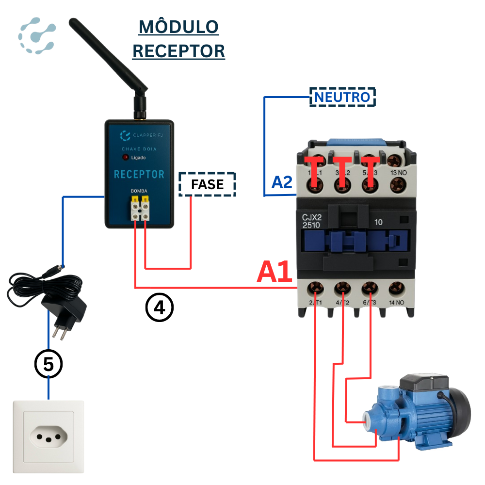 - 1 Módulo Receptor com Relé: Que recebe os sinais e ativa a bomba conforme necessário.